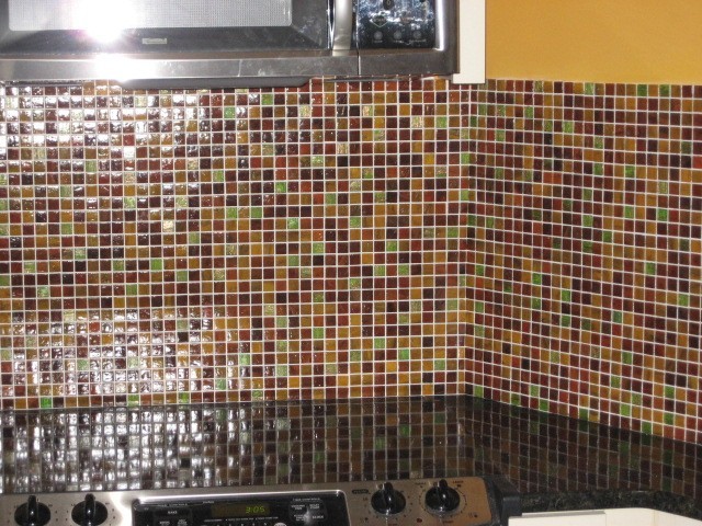 A Multi-color glass mosaic backsplash is fun, flirty, and very versatile!