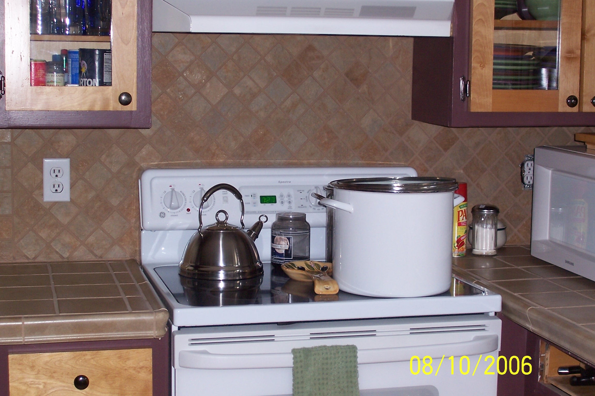 Rustic Country New England with an updated flair - A close up countertop and backsplash shot, and then the whole kitchen - very warm and inviting...